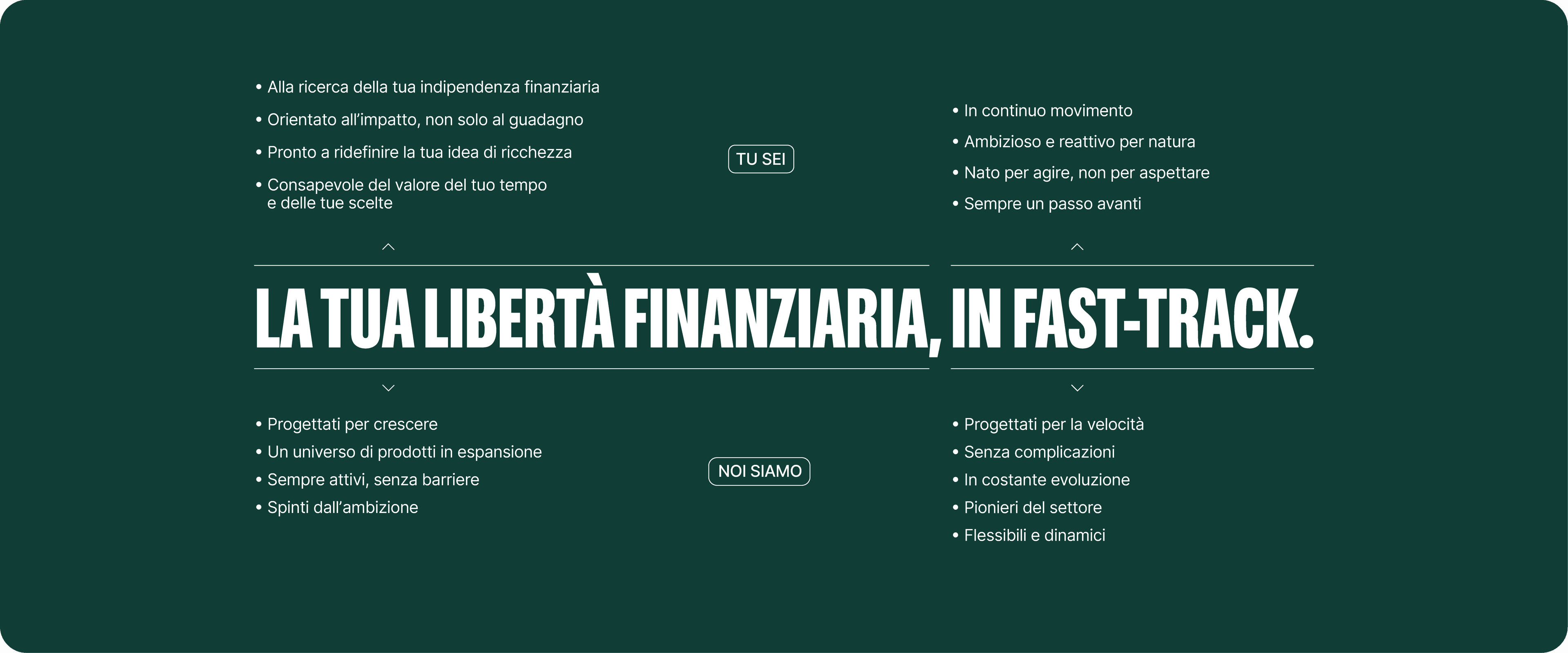 Non stiamo solo cambiando il modo di pensare la ricchezza. Stiamo dando valore alla tua libertà.